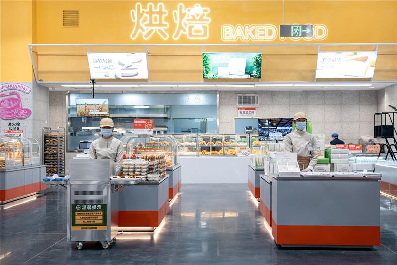 與未改造的永輝超市門店相比,世紀金源店改動不小。兼顧日常生鮮食品消費和節(jié)假日集中采購,是這家店呈現(xiàn)出得一大訴求。世紀金源店賣場布局更具空間感,烘焙、熟食、鮮肉、水果、蔬菜、水產(chǎn)、食品、百貨、酒飲、散裝零食等品類依次分布在賣場主動線上。精選出的近10000個SKU采用量販式陳列,使得整個賣場更像是一家倉儲店。永輝超市同時在賣場內(nèi)設(shè)置了多個試吃點,日常為消費者提供主推單品試吃試飲,吸引其購買。其中鮮食加工區(qū)、生鮮區(qū)是兩個主力區(qū)域,承擔(dān)了提升差異化,培養(yǎng)顧客粘性的職能。鮮食加工涵蓋烘焙、熟食、餐飲等品類。永輝超市一方面借鑒引入了榴蓮千層、烤雞等網(wǎng)紅商品,給沒有接觸過會員店、但又能夠從小紅書等社交網(wǎng)絡(luò)平臺上了解到相關(guān)網(wǎng)紅品的消費者提前體驗。另一方面, 永輝超市也聯(lián)合當(dāng)?shù)毓?yīng)商,上架了有機鮮花餅、甜皮鴨等區(qū)域特色商品。其中烘焙品類是永輝超市重點發(fā)力的增長品類。《第三只眼看零售》認為,這也是零售企業(yè)發(fā)力產(chǎn)品差異化,向制造型零售商靠攏的機會品類。因為烘焙消費的場景邊界正在模糊,逐漸從節(jié)日、紀念日滲透進人們?nèi)粘I钪械牧闶场⒄汀T诖吮尘跋拢闶凵烫峁┵徺I方便、品類齊全的烘焙產(chǎn)品,培養(yǎng)了消費者“隨手帶”一份烘焙商品、隨吃隨買的習(xí)慣。而且,相比較烘焙專業(yè)店來說,零售賣場的烘焙品類更具性價比。生鮮品類是永輝超市的強項。結(jié)合產(chǎn)地倉優(yōu)勢后,世紀金源店進一步強化其新鮮感。例如門店內(nèi)設(shè)置的步入式生鮮冷藏區(qū),具有兩個功能。一是陳列有100個左右的蔬菜單品,讓對新鮮程度要求最高的蔬菜保持穩(wěn)定低溫,以此減少損耗;二是發(fā)揮暫儲功能。例如預(yù)估銷量較大的賣場堆頭陳列生鮮品等即可暫存在冷藏區(qū)內(nèi),方便門店隨時補貨。《第三只眼看零售》注意到,世紀金源店內(nèi)的生鮮品類均為預(yù)包裝銷售。其中超90%商品由永輝云南產(chǎn)地倉的加工倉自主完成,多重保障嚴控食品安全。而且,店中設(shè)有獨立肉品加工間,可以實現(xiàn)肉禽類產(chǎn)品冷藏、冷凍雙位一體,并能根據(jù)消費者需求實現(xiàn)現(xiàn)場切割。“生鮮品牌化能為商品帶來更可觀的附加值,例如產(chǎn)品生產(chǎn)標(biāo)準化、更多溢價空間、原材料、品質(zhì)保障、縮短消費者選擇路徑等。實際上現(xiàn)在不少零售企業(yè)也在著力推動自有品牌建設(shè),并從低價賣點階段發(fā)展到高品質(zhì)、性價比階段。”凱度消費者指數(shù)大中華區(qū)總經(jīng)理虞堅曾對《第三只眼看零售》分析稱。生鮮標(biāo)品化程度提升后,也有利于企業(yè)做到線上線下每一個生鮮單品同條碼、同價格、同品質(zhì),從而迎合線上線下一體化運營需求。例如世紀金源店即可通過“自有渠道+第三方渠道”為消費者提供線上最遠20公里半徑內(nèi)配送、最快30分鐘送達服務(wù)。此外,圍繞“全球+全國+本地”的垂直供應(yīng)鏈,永輝結(jié)合當(dāng)前消費趨勢及當(dāng)?shù)叵M偏好,幾乎在每個產(chǎn)品類目中都打造出了“進口+全國+云南特色”的商品結(jié)構(gòu)。就拿生鮮產(chǎn)品來說,永輝云南旗艦店引入了來自新西蘭的牛羊肉、進口龍蝦、帝王蟹等優(yōu)質(zhì)進口生鮮產(chǎn)品,來自全國各優(yōu)質(zhì)產(chǎn)區(qū)的新鮮蔬果,也增加了具有本地特色的云南火腿、牛干巴、天麻等地域農(nóng)副生鮮產(chǎn)品,最大程度滿足不同消費者需求。