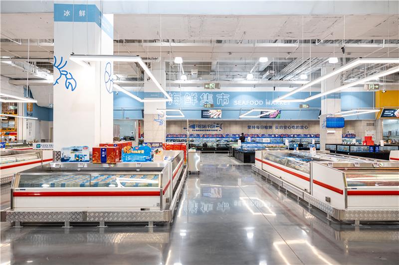 再開千店一面的標(biāo)準化大賣場,難有勝算。“一店一議”是永輝超市現(xiàn)階段的開店策略。永輝超市會根據(jù)門店所在區(qū)域、商圈做出針對性門店規(guī)劃、調(diào)整品類結(jié)構(gòu)、主打商品、門店陳列及增值服務(wù)等板塊。目前永輝超市已完成超300家老店調(diào)優(yōu),新開門店也會以門店為單位具體規(guī)劃,在標(biāo)準化基礎(chǔ)上強調(diào)單店差異。云南昆明世紀金源店是永輝超市最新開出的城市旗艦店,開業(yè)首日全渠道銷售超200萬元。該店布局陳列酷似山姆會員店、品類更為年輕化、同時具有煙火氣,是這家店呈現(xiàn)出的直觀感受。這些特點使昆明旗艦店更適用于小家庭集中采購、滿足邊逛邊買的休閑需求。在即時零售發(fā)展下,永輝門店如此定位,有利于吸引消費者重回線下。云南旗艦店占地面積近13000平方米,近10000個SKU。烘焙、生鮮、餐飲及食品是其主打品類。其中,進口商品占比約15%,網(wǎng)紅商品占比約10%、云南地標(biāo)品占10%左右。整體來看,該店有超過40%商品是首次在永輝渠道內(nèi)銷售,由此可見“一店一議”策略背后,也是以門店為單位采購,對供應(yīng)商資源調(diào)配及組貨能力要求較高。《第三只眼看零售》走訪門店后發(fā)現(xiàn),世紀金源店有三個特點,背后是永輝超市團隊理解目標(biāo)客群后給出的解決方案。一是強化倉儲店屬性,集中打造大單品。例如水果區(qū)的車厘子、草莓;食品區(qū)的費列羅巧克力、撩面;水產(chǎn)區(qū)的大黃魚禮盒等單品,集中陳列在賣場主通道醒目位置。此類商品一方面有培育“爆品”的機會,有利于永輝超市集中單品采購量,提升產(chǎn)品性價比;另一方面,門店即倉儲,也能進一步減少物流環(huán)節(jié),降低運輸損耗,優(yōu)化供應(yīng)成本。二是做聚焦所在區(qū)域的相對差異化。例如云南屬于內(nèi)陸省份,海鮮產(chǎn)品滲透率較低,永輝超市即設(shè)置了自營海鮮區(qū),包含淡水活鮮、進口冰鮮、冷凍大海鮮等多種品類,逐步培養(yǎng)消費者。針對云南消費者偏好的菌子、牛干巴等品類,永輝超市則強調(diào)“平價商品”,做到極致性價比。三是吸引年輕客群,強化“好逛”屬性。這在渠道多樣化,各類商品可得性極高的背景下,是實體門店提升來客數(shù)的必要操作。為此,永輝超市在軟服務(wù)方面增加了生鮮/活鮮精加工、部分加工食品免費烹飪及日常試吃服務(wù);在硬件方面,永輝門店內(nèi)設(shè)置了顧客取冰、飲水處、休息區(qū),提供自主打包、免費充電等服務(wù)。