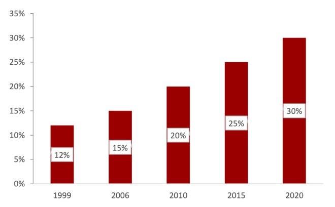 倉儲會員店起源于美國,戰(zhàn)后美國城鎮(zhèn)化率提高、中產(chǎn)階 級群體擴(kuò)大、城市外圍商業(yè)圈發(fā)展催生了倉儲會員店業(yè)態(tài)。