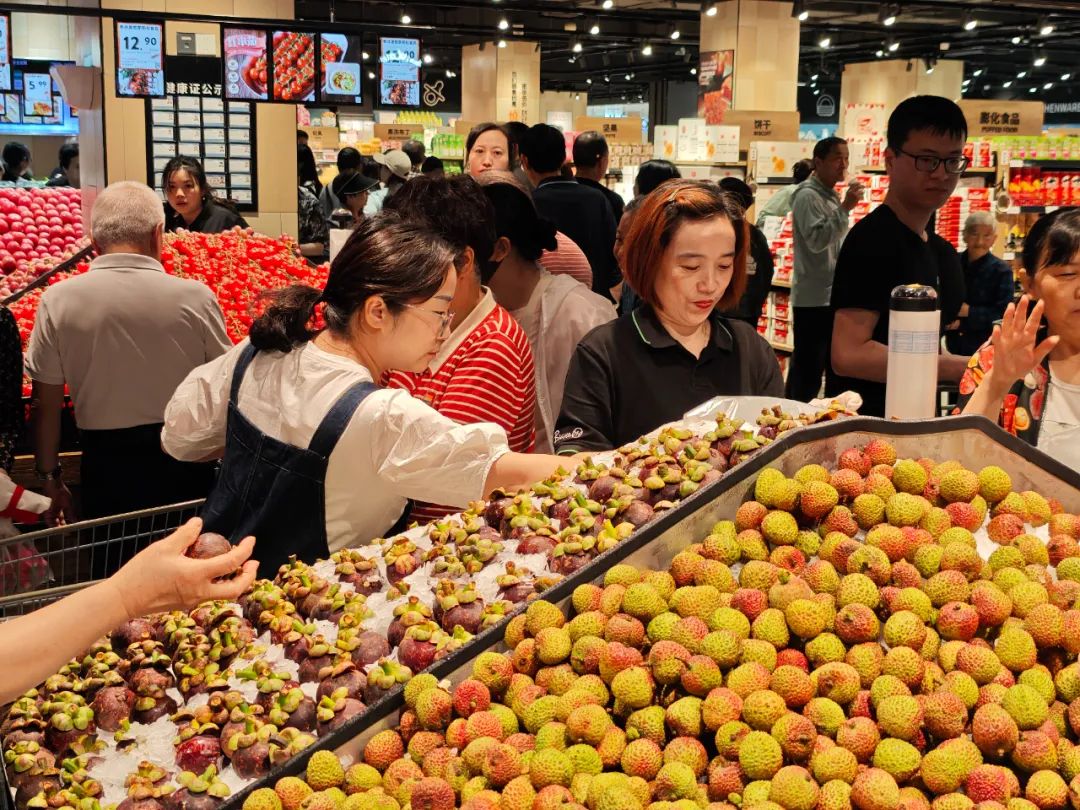 花都融創(chuàng)茂店:全國首家文旅特色店;“輝映嶺南 香約荔枝”助農(nóng)專區(qū),湛江妃子笑荔枝24小時(shí)高效流通。